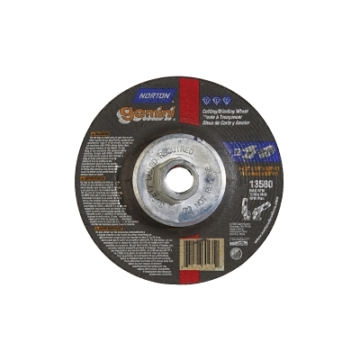 Gemini Type 27 Grinding and Cutting Wheel, 4-1/2 in dia, 1/8 in Thick, 5/8 in -11 Arbor