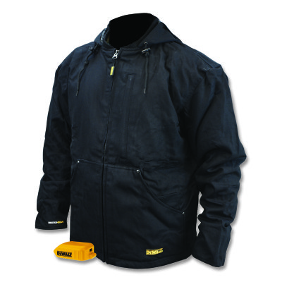 • The Heavy Duty Heated Work Jacket has a durable water-and-wind resistant duck fabric outer shell and fleece polyester lining