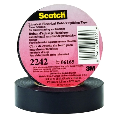 Linerless Electrical Rubber Tape 2242, 15 ft x 3/4 in, Black