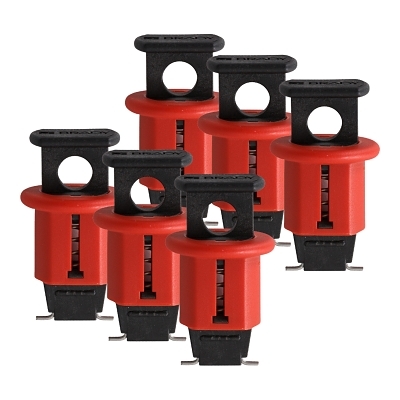Miniature Circuit Breaker Lockouts, 0.32 in Dia. Shackle, Red, Pin Out Standard